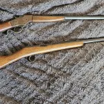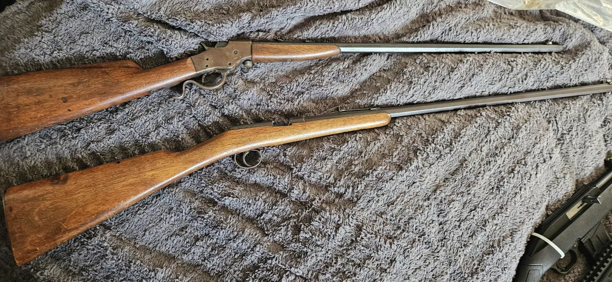 Stevens Favorite 1915 in .32. Nice atone, so.e case hardening present. Complete. No lever slop. $400 plus shipping. Can come with a nice Husqvarna .22 rifle, has chamber welded, nice period octagon donor barrel for .22 conversion for an extra $75.