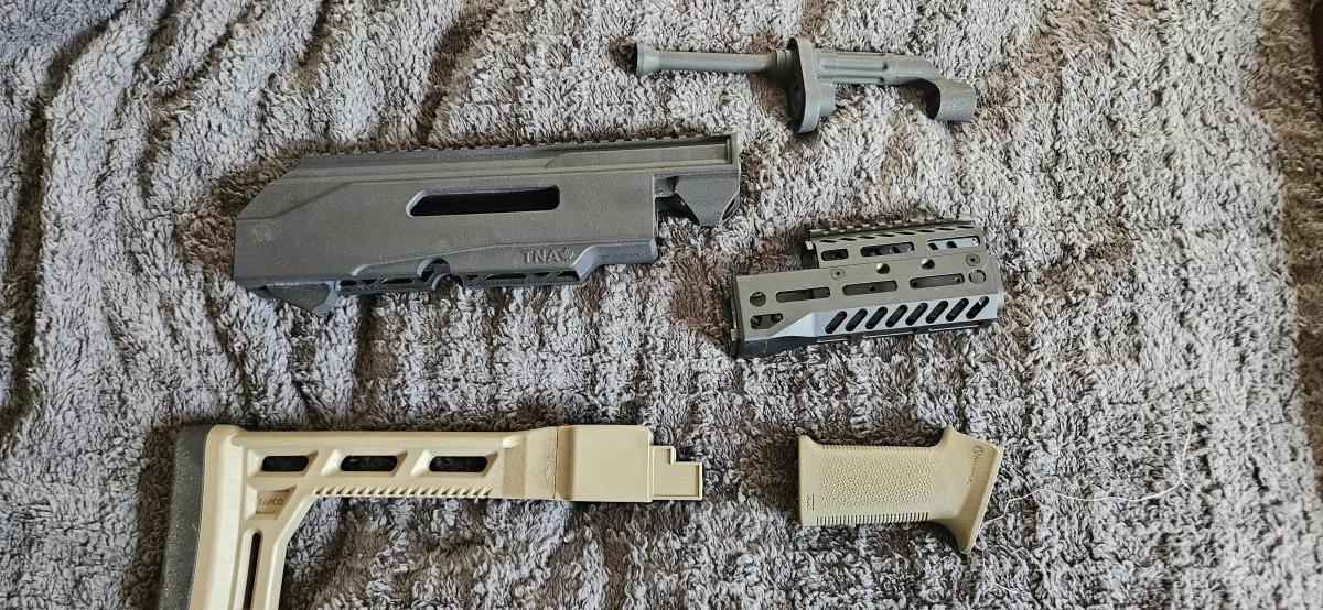 Mossberg 702 plinkster. Brand new. Comes with 6 25 round mags, TNA clamshell, fab defense folding ak stock and grip in fde and aluminum handguard. Will require slight modification and fitting. $600 plus shipping