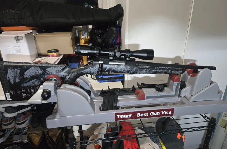 Ruger american ranch in 556 -(223) 15" barrel topped with a Burris 3x9x40. Action is smooth, threaded muzzle.comes with a new stock because someone painted or put a wrap on the one thats on it.