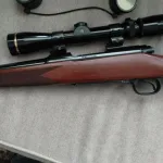 Winchester model 70 s/a 243 crf. This is the classic compact model in excellent condition. Leupold vari x lll 2.5-8 also in excellent condition. The wood has a few light safe kisses and small marks by the front sling stud. I'm not willing to trade on this rifle.