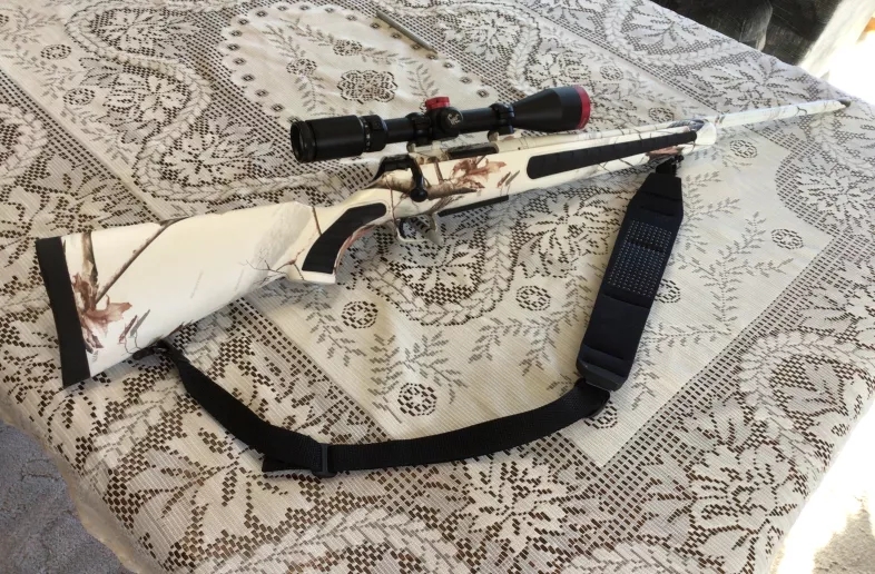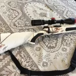 Thompson Venture Predator Snow Camo Rifle in 22-250 REM. The rifle is in excellent condition, It includes Bases/Rings and a Brand New Scorpion Red Hot Varminter Scope 4x16x44 SF with dial system.