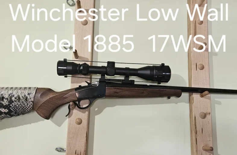 Winchester Low Wall Model 1885 ,, Snake skin stock cuff, 17WSM , Bushnell 4-12x50 , New out of box never been fired.