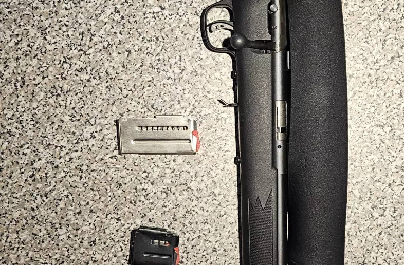 Comes with 2.5 - 10x power scope, two magazines and, 6 boxes of ammo
