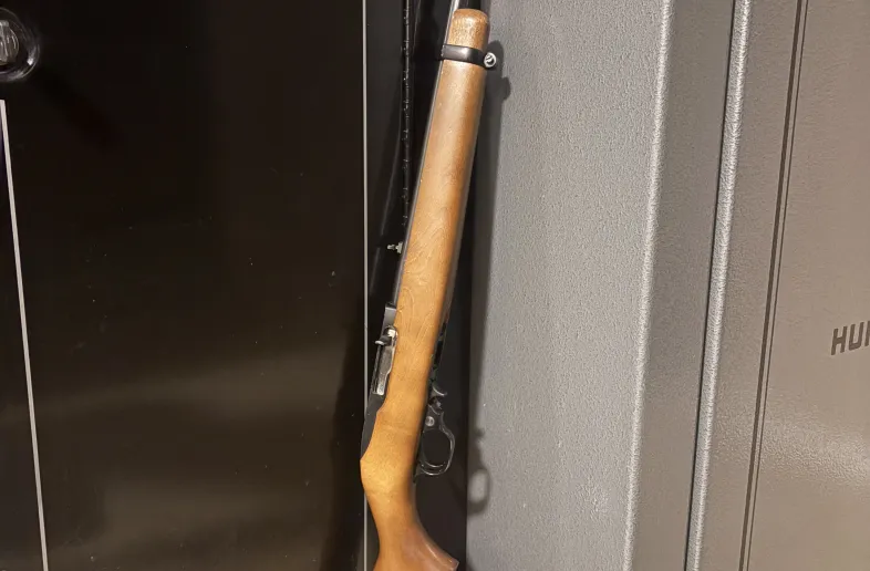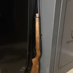 Ruger 10/22. Wood stock, aluminum trigger guard and barrel band. Overall nice shape. Some small dings in the stock. Only real issue are 2 of the 4 scope mount holes are stripped out from the previous owner and will have to be tapped to 8-40 scope mount screws.