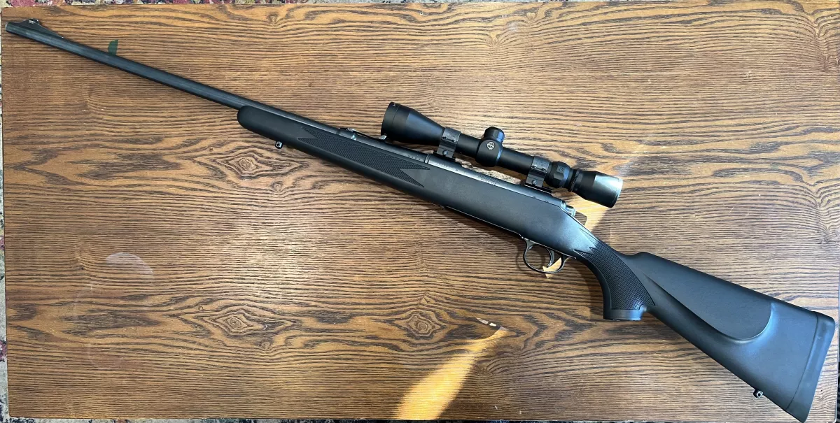 Remington 721 in 3006 synthetic stock. iron sights. comes with weaver bases and quick detachable rings. Tasco 3x9x40.
