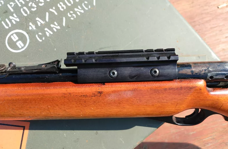 Comes with original rear peep sight and bolt dust cover. Also has aftermarket scope rail from Numrich which uses screw holes already on the receiver. A previous owner painted it black which comes off easy. Accurate rifle. Will ship anywhere.