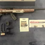 New in box, Ruger 10/22 blued/no iron sight/no barrel band, 18” model. Comes with rare Samson B-TM stainless folding stock (authentic walnut). Non-restricted.