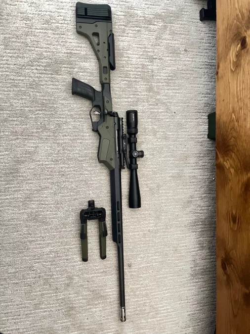 Selling my Savage Axis 2. Very Good condition. I've put approx. 250-270 rounds through it. It is housed in an MDT chassis, OD Green.
