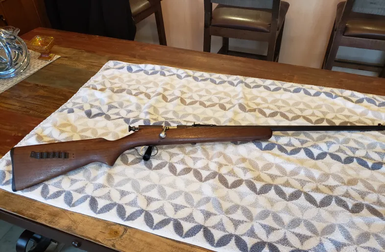 Savage 3D .22 short or long single shot rifle. Solid old gun works as it should, stock has some dings, good candidate for refinishing or use it as is.