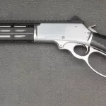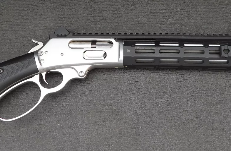 Marlin 45-70 Stainless trapper big loop. Has Midwest industries front hand guard with Ranger Point buttstock. Comes with wooden stock and foregrip w/ leather shell holder (6) as well as stainless skinner aperture sights. Also has an after market "relaxed" load gate for smooth, easy and very quick loading. Has new sights installed (not yet sighted in) as well as side mounted picatinny rail for flashlight. This rifle is amazing and has dropped me some bears and moose. Very accurate thumper made for tight bush and quick shooting.