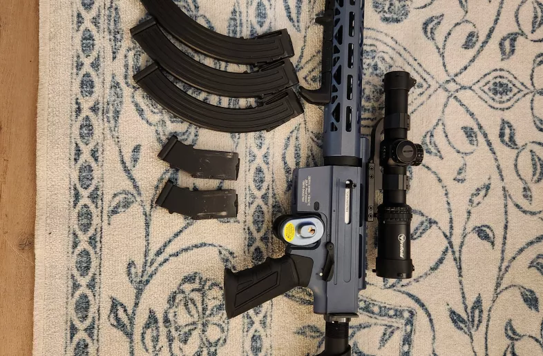 Comes with 3x25 mags, 2x10 mag metal and manual. The Lonnie mod has been done to the buffer tube.