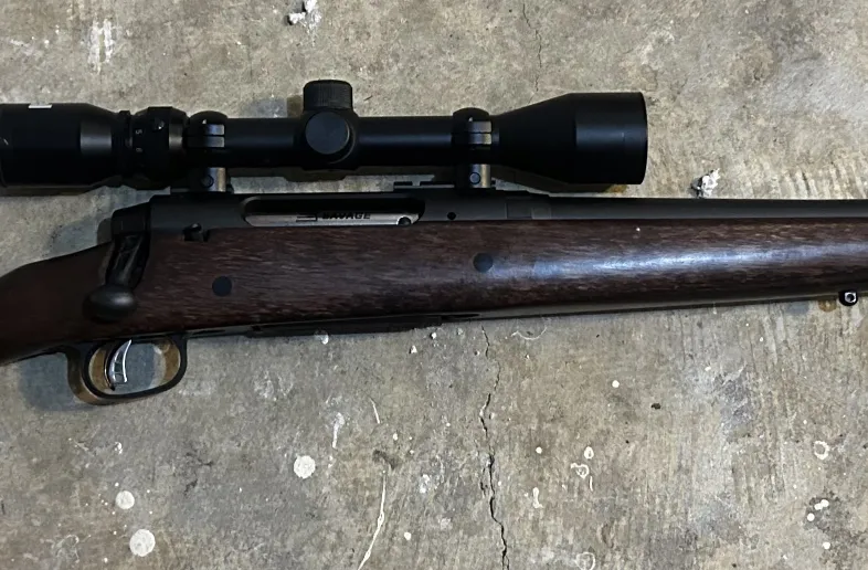 Like new Savage axis 7mm-08 hardwood. Factory boyd hardwood stock. Less than 30 rounds thru