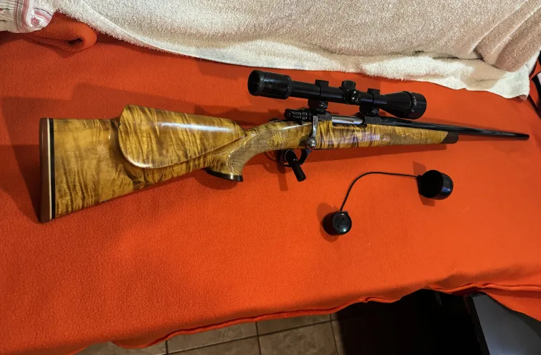 ATTENTION COLLECTORS : CUSTOM 6MM REM HEAVY BARREL RIGHT HAND BOLT ACTION RIFLE. 25 1/2" HEAVY BARREL. ENGRAVED STOCK WITH LEFT HAND MONTE CARLO. BUSHNELL BANNER 10X40 VARIABLE YARDAGE SCOPE. MAUSER ACTION. METAL ENGRAVED ALL OVER. RECOIL PAD. LOP IS 13 3/4". INITIALS ON GRIP. WEIGHS 10.56 LBS. CHECK OUT THE PICTURES. NO TRADES. $2000 PLUS SHIPPING. PAYMENT - LAYAWAY PLAN IS AVAILABLE. CHECK OUT MY OTHER ADS.