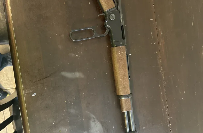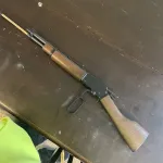 Basically brand new bought it a little while back has a mark on it from getting moved around in the safe, great little fun lever gun great for taking out and planking with the little ones and it’s a takedown .