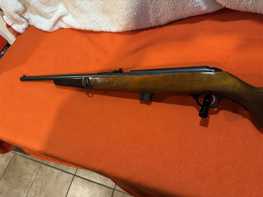 MOSSBERG MODEL 352 - 22 S,L,LR SEMI AUTO RIFLEWITH DETACHABLE MAG. 18 1/2" BARREL. FLIP DOWN FRONT HANDLE. LOP IS 13 3/8". SLING MOUNTS. HARD TO FIND SEMI THAT SHOOTS S,L,LR. NO TRADES. $440 PLUS SHIPPING. PAYMENT - LAYAWAY PLAN AVAILABLE. CHECK OUT MY OTHER ADS.