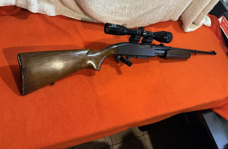 REMINGTON 760 GAMEMASTER 30-06 PUMP RIFLE WITH DETACHABLE MAG. 22" BARREL. SLING MOUNTS. SWIFT 4-12X40 VARIABLE YARDAGE SCOPE. SEE THRU MOUNTS. LOP IS 13 1/2". NO CRACKS IN WOOD. SLIGHT BLEMISHES IN RECEIVER. NO TRADES. $900 PLUS SHIPPING. PAYMENT - LAYAWAY PLAN IS AVAILABLE. CHECK OUT MY OTHER ADS.