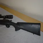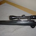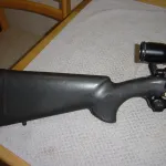 THIS HAS A 24' HEAVY BARREL . IT HAS BBEN HUNTED WITH AND HAS SOME SCUFF MARKS ON THE SYNTHETIC STOCK .