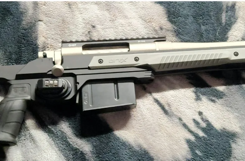 Included is, Mossberg Patriot 300wm, bedded in an Oryx MDT, 20MOA MDT Pic rail, Witt machine clamp on muzzle brake, original laminate stock.