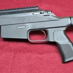 "The TRX Bronco Howitzer is fire breathing hand cannon. It is one of the only true backpack rifles available in .308 or 6.5 Creedmoor as it was designed to fold into a 19″ package which allows it to slide completely into most day packs, making it the perfect companion when sharing the backcountry with large predators. It is a survival rifle that packs a punch. It is fitted with either a 9.5 or 12.5 inch barrel chambered in .308 Winchester or 6.5 Creedmoor. The Howitzer uses the two-piece Bronco Adaptable Chassis System with a 7 inch fore-end. The chassis is made of anodized aluminum and fitted with a folding stock that captures the bolt handle when folded. When fitted with our patent pending safety wedge, the FSS stock can be made to lock the safety in the “safe” position, making it unable to fire when the stock is folded.