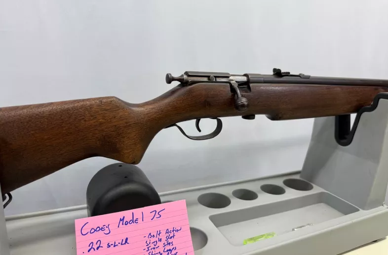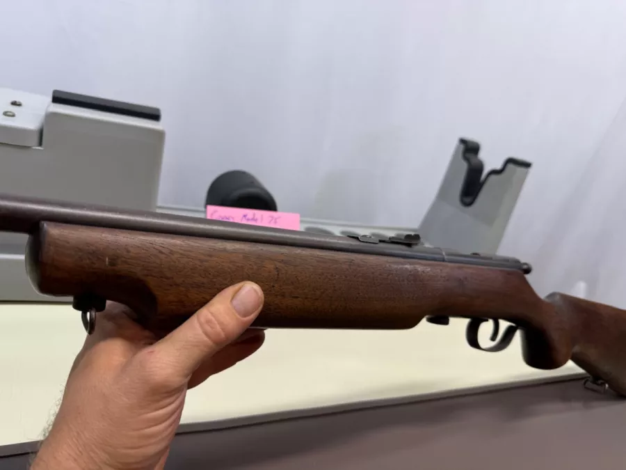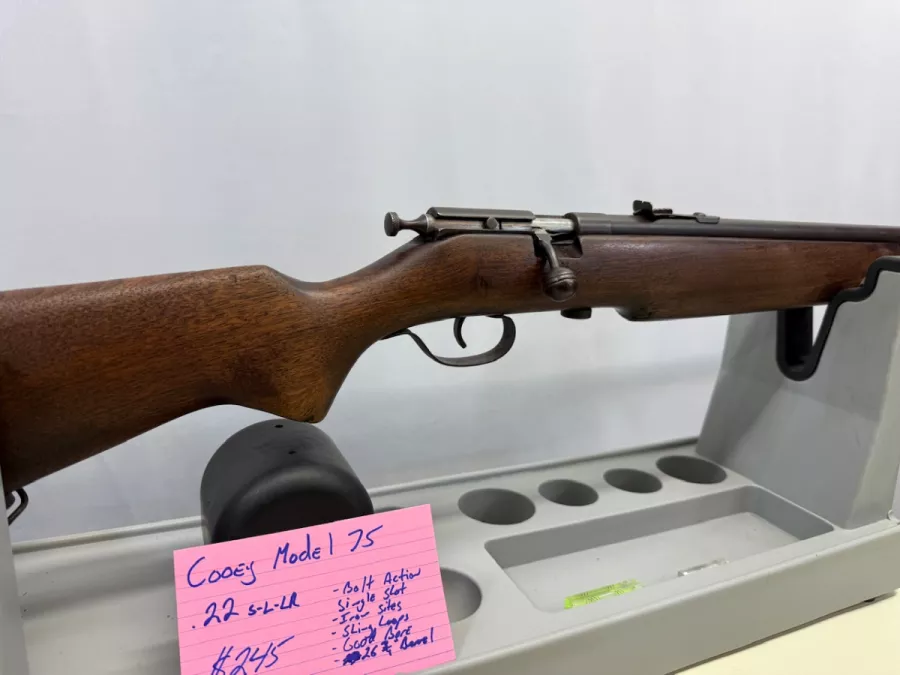 Cooey Model 75 in .22 S-L-LR bolt action single shot in good condition. Has iron sites, sling loops, good bore and a 26 3/4” barrel. Shipping and insurance by purchaser valid Pal Verification Required.