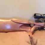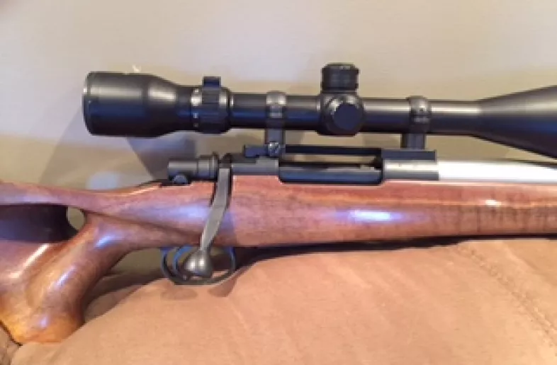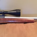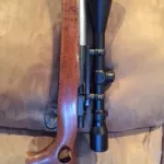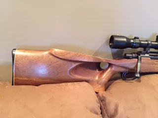 Mauser 96 action, blueprint built tight and smooth, tactical bolt, commercial bolt shroud, custom 1 off thumbhole stock with very nice figure and oil finish. Leupold 1 pc base and rings, heavy stainless hand lapped barrel from Gaillard bead blasted for matte finish 1-14 twist 28” long. Quigley Ford 4-16x50 800 yard scope for 3810 fps 50 grain bullets, chronographed hand loads to match. Timney fully adjustable trigger with side safety as seen in pictures