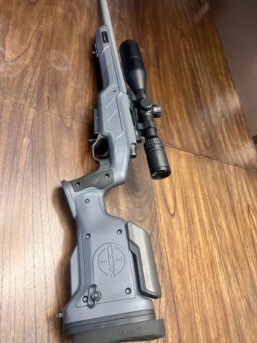 For sale is a Custom built 6.5 creedmoor rifle, the rifle was built by Jerry at High Pro Precision. It's built off a Remington 700 AAC-SD action, 26 inch semi heavy barrel, has a Cadex Strike Nuke chassis, Cadex trigger, MDT 5 rd metal magazine, and a MDT 20 MOA rail. Also has the action and barrel cerakoted sniper grey.
