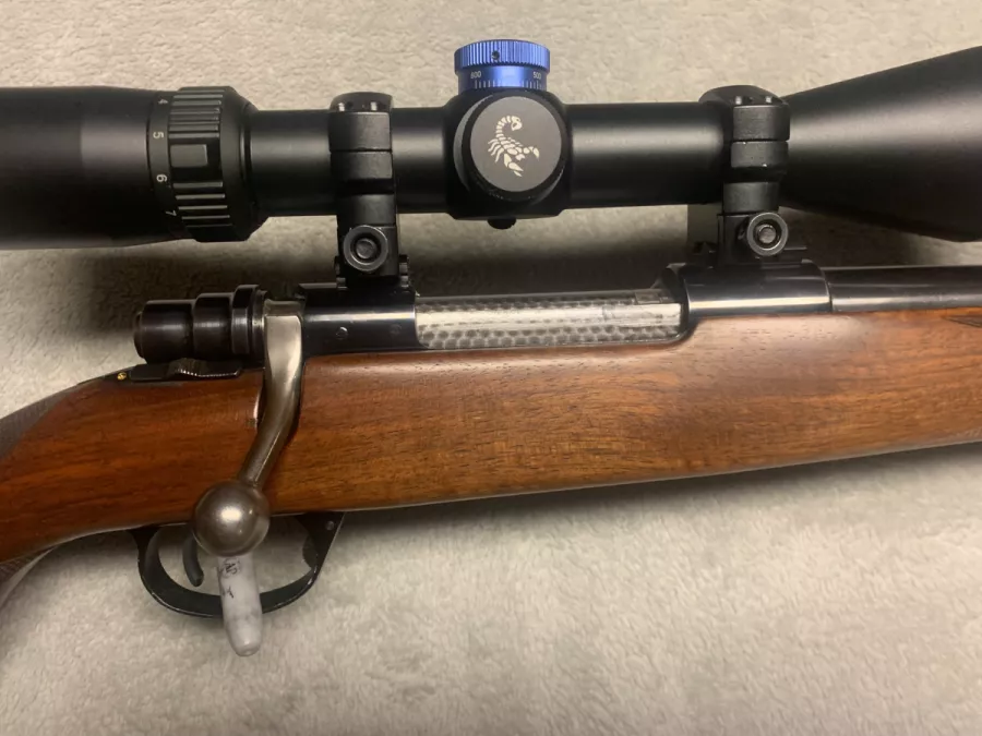 Husqvarna 1600 crown grade, blueing in great shape. Some scratches in wood. Shoots 130 grain core locks pretty well. Scope not included.