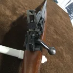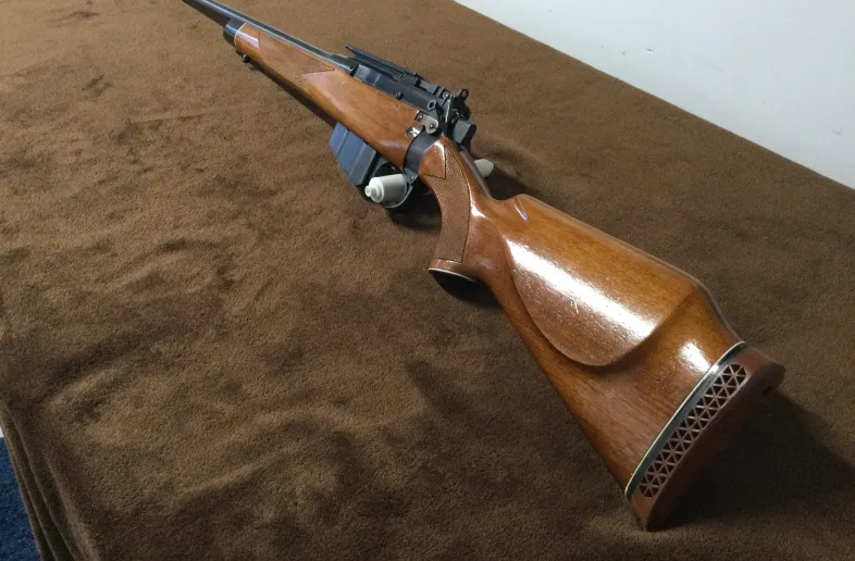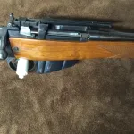 Nice sporter of the classic Lee Enfield No4 Mk1. Tip off mount, T01, for scope use if desired. 22 inch barrel. Handles very well. Good condition, vg bore. One ten round magazine.