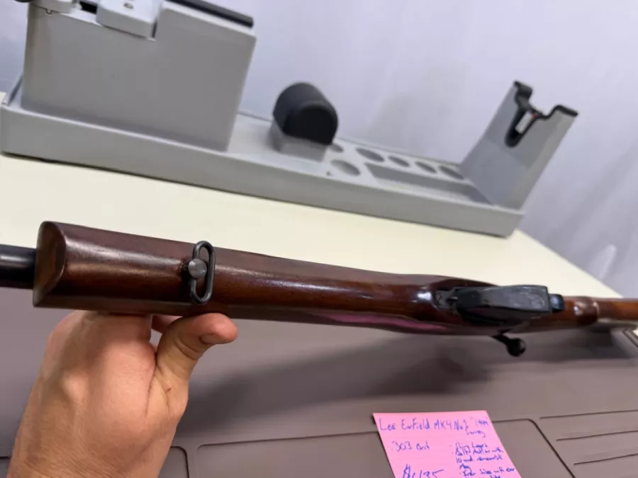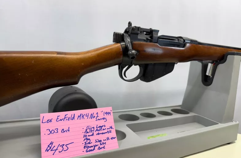 Lee Enfield MK4 No1 “1944” Surrey in .303 Brit bolt action with removable metal 10 round magazine in Great plus condition. Has iron sites with rear elevation sites, sling loops, and a good bore. Shipping and insurance by purchaser, valid PAL verification required.