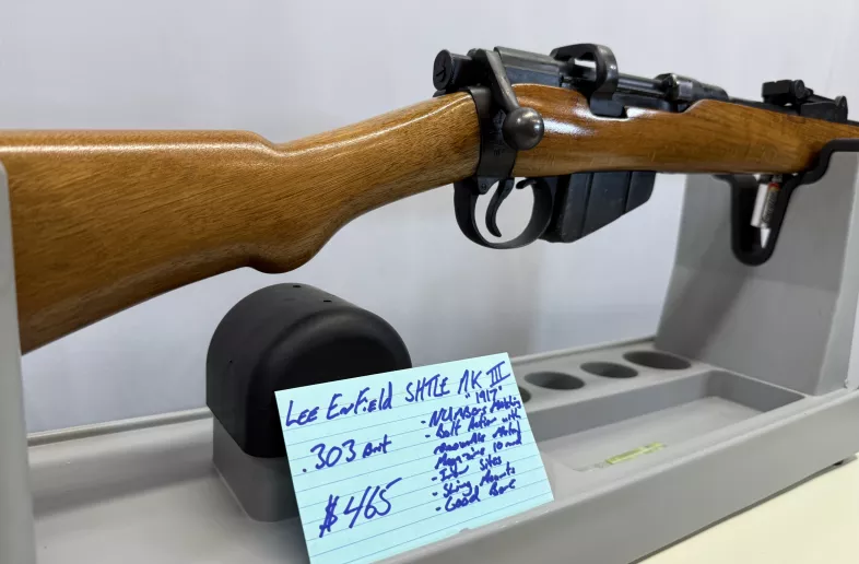 Lee Enfield SHTLE MK III “1917” in .303 Brit bolt action with removable metal 10 round magazine in Great Plus Condition. Is Numbers Matching, iron sites, sling mounts, and has a good bore. Shipping and insurance by purchaser, valid PAL verification required.