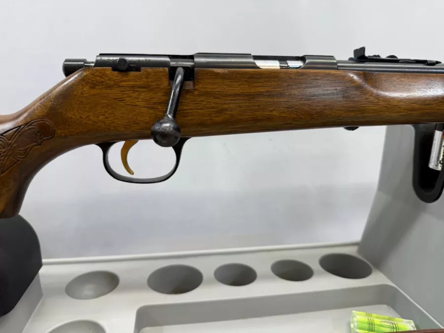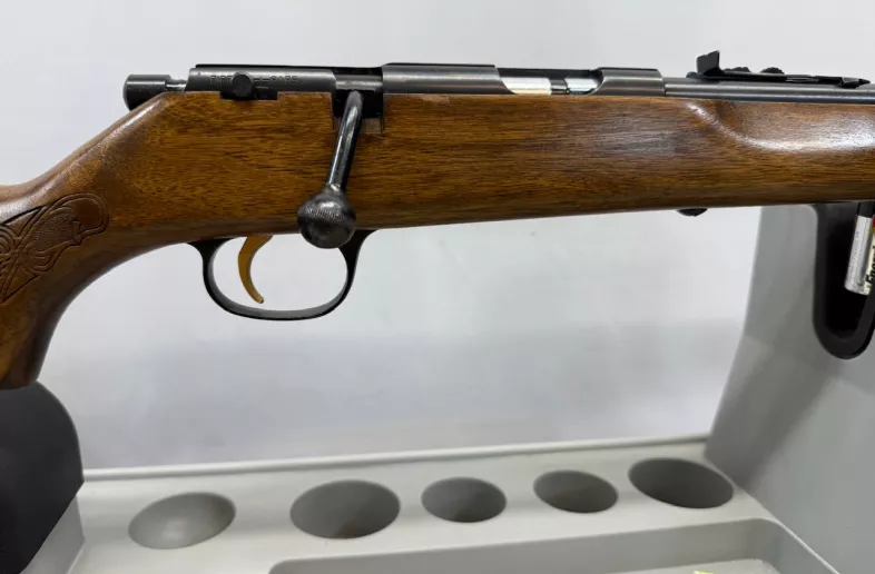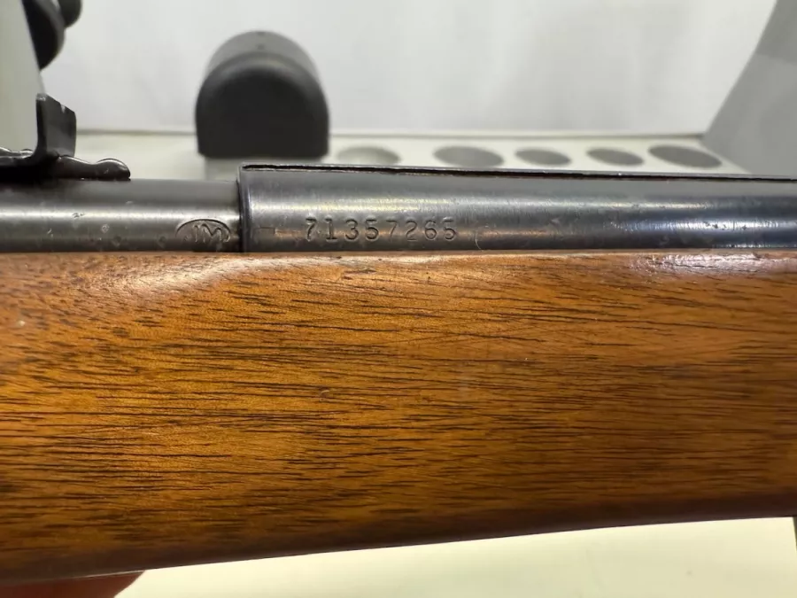 Marlin Model 783 in .22 mag bolt action repeater with 14 round tube magazine in Great condition. Has iron sites, grooved receiver for scope mounting, has “JM” stamp on barrel, leather sling and mounts, micro grooved rifling, and a good bore. There is some lacquer flaking on the left rear side of the stock from long term case storage does not affect functionality.