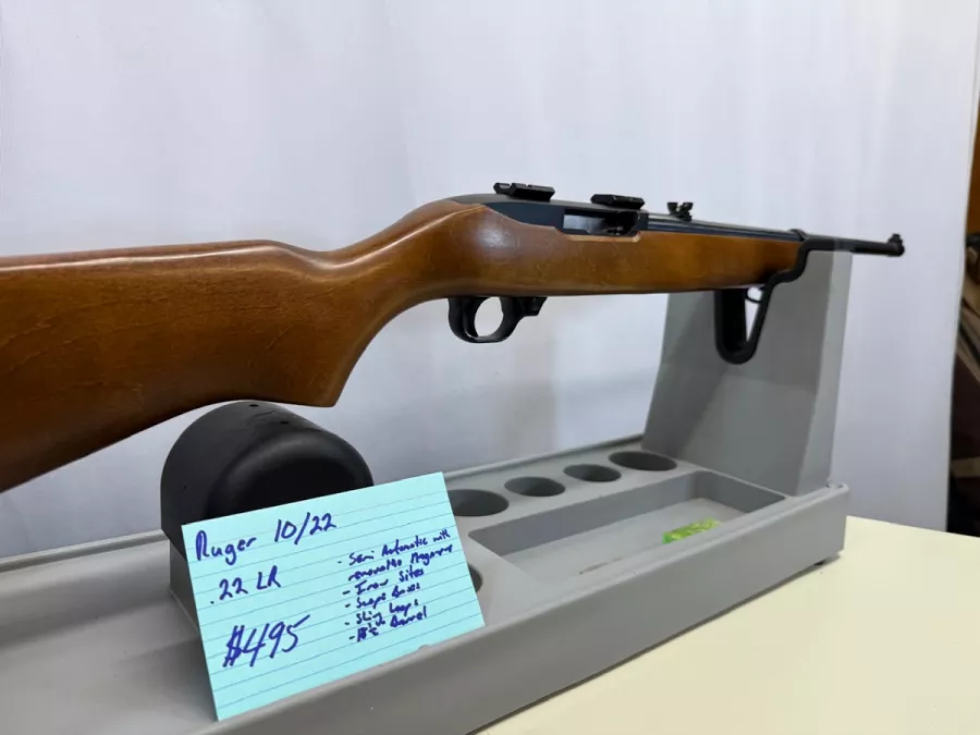 Ruger 10/22 Carbine in .22 LR semi automatic with removable magazine in Excellent condition only a few minor handling marks. Has iron sites, scope bases, sling loops, and 18 1/2” barrel. Shipping and insurance by purchaser valid Pal Verification Required.