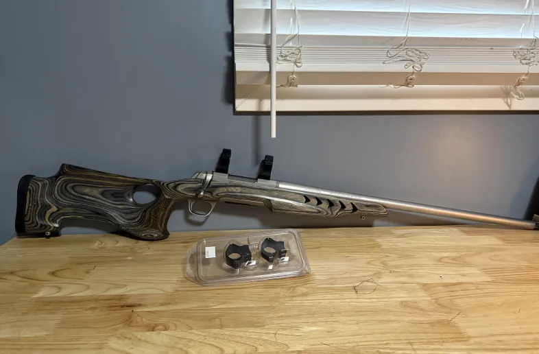 Rare piece. Couple dings in stock, but nothing major. Odd scuff on the barrel. Can send closer pics for interested buyers. Comes with a set of 30mm and 1” Talleys. Has been threaded for a brake (has cap).