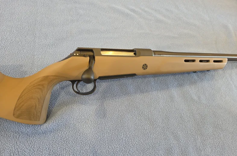 Selling a new in box, unfired Sauer 100 Fieldshoot with the 24" heavy barrel barrel in .308 Win. This is a very nice Sauer rifle made in Germany and is the target/varmint model with heavy barrel and raised cheekpiece stock. This gun has a custom tan cerakote finish added on to the laminate stock. Work was completed by Red Tower Cerakote in Toronto And cost over $350 to complete. Added a nice textured finish and look to the laminate stock. Shows more shiny in the pics but is a standard nice drab FDE. Selling to fund another project in7mm. Really solid gun and great value with the custom stock, unfired and premium German quality. Takes rem 700 mounts/bases.