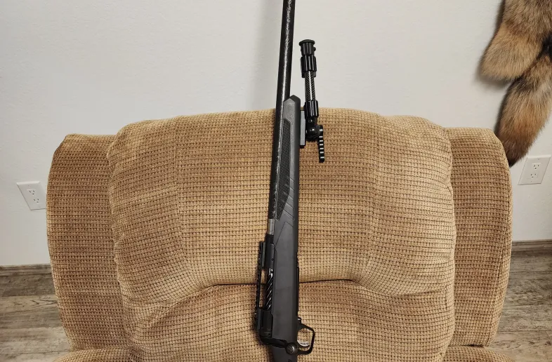 Savage 110 ultralite in 6.5 prc. Has a sure fire comp brake, scope rail, and a small bipod rail was added with a Caldwell carbon fiber bipod.