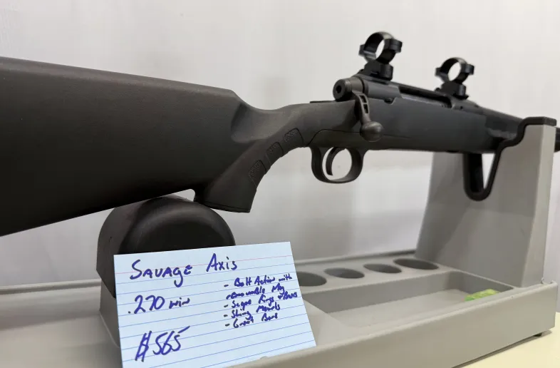Savage Axis in .270 win bolt action with removable magazine in Very Good Condition. Comes with rings and bases, sling mounts and has a good bore. Shipping and insurance by purchaser valid PAL verification required.
