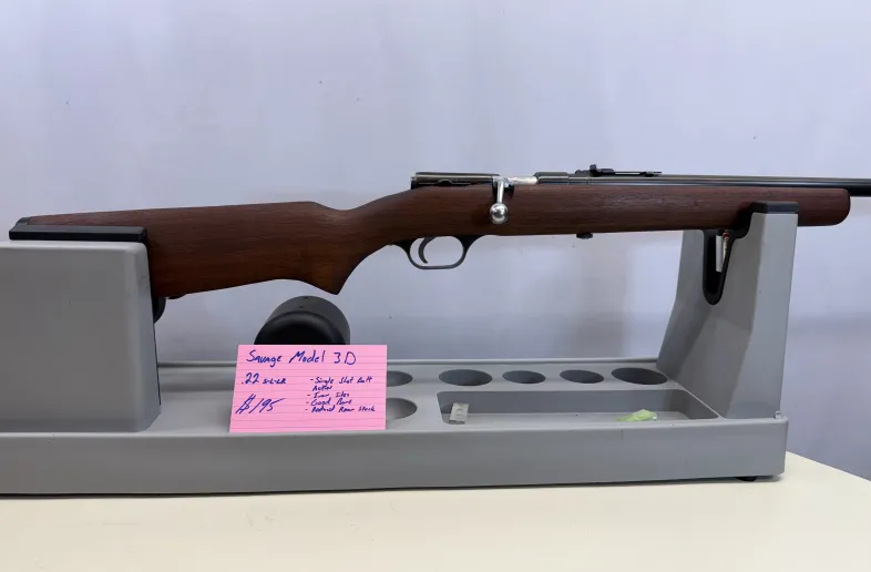 Savage Model 3D in .22 S-L-LR bolt action single shot in Great plus condition. Has iron sites, good bore, and rear stock Hight was reduced by previous owner which gives it a slimmer profile. Shipping and insurance by purchaser valid PAL verification required.