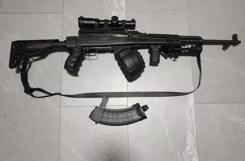 Brand new still in has cosmoline on it. Rifle comes in a modern ati body that allows you to fold up the stock for a more compact package and also give you the ability to run tactical attachments. Rifle comes with 2 magazines 1 50 round drum magazine that is pinned with an aluminum rivet to 5 rounds and one 30 round mag that is pinned to 5 rounds with an aluminum rivet. Rifle has a Kodiak rail installed the full length version that has 2 mounting points to the reciver which makes the most solid base for you optic that is available on th market when you need to clean the rifle simply un do the bolt in the rear lift up the rail while still connected to the front mount and you have easy access to all your internals when done simply close it back down reinstall the bolt and you still retain the zero on your optic. Rifle comes with a short grip retain better controll of your rifle and a bipod for additional support when shooting prone or off objects. Rifle comes with a 1-6x24 llpvo on canted rings and a throw lever for quick magnification adjustmen. Of course no rifle is complete without a sling. It's a simple tactical sling made from durable nylon that is adjustable to your needs and preferences. Shipping is free if needed to anywhere in Canada. If you are not comfortable with taking the gun apart to clean the cosmoline I can do that for you for a fee and if you do not know how to sight in an optic I can also do that for you for a fee.