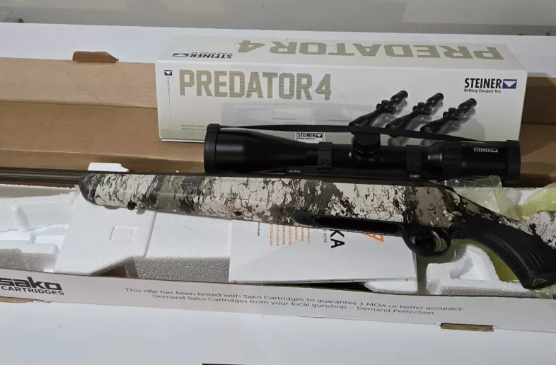For Sale: Tikka T3X Alpine Veil 7MM Rem Mag. Like new condition, has never been in a hunt and has less than 40 rounds thru it. Comes with clip, muzzle break, rail, rings and a Steiner Predator 4 (4-16x25). Asking $2700.00 and will ship but no insurance or make arrangements to meet in Winnipeg. No trades. Would separate the scope and gun if you want the gun.
