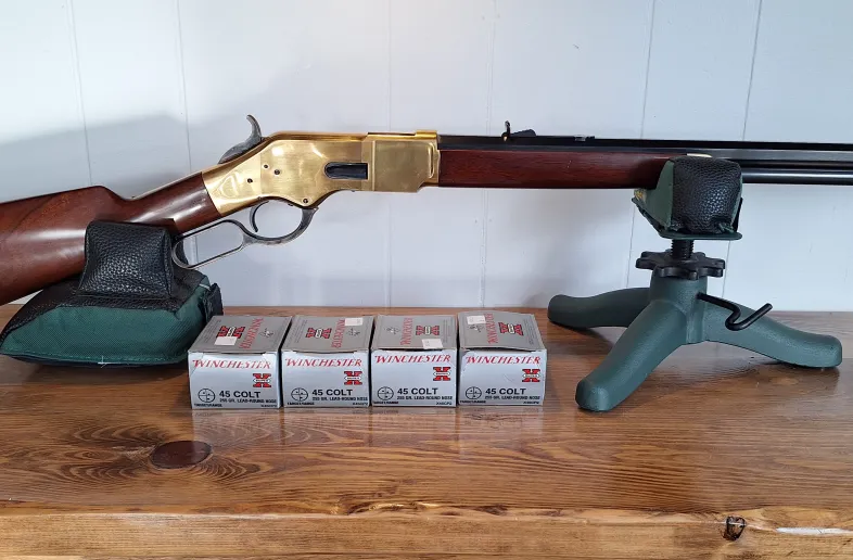 Uberti model 1866 yellowboy chambered in .45LC (colt) with ammo