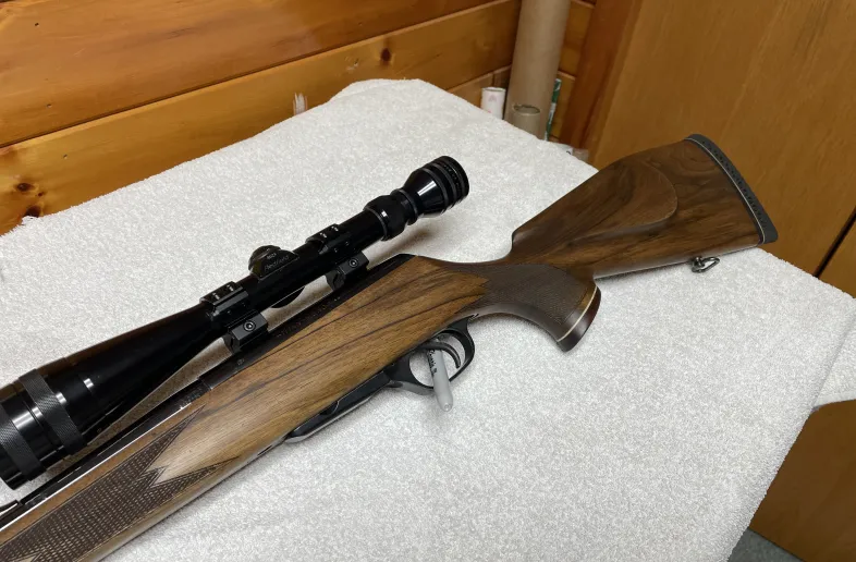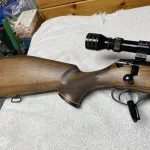 This is an absolutely beautiful little rifle.I had the gorgeous wood stock professionally refinished in oil and the checkering re-cut, brand new pachmayr recoil pad.Smooth little action and it shoots really well. Removeable clip. High gloss blueing with a small blemish as shown-hard to see but I thought I should mention it. Balanced very well.Grooved for scope ring attachment. Scope is a 4-12x Old school Redfield with a fine crosshair-Gloss. She's sat in the safe since I came back from the range-time for a new home for someone to enjoy. PAL is a must. EMT is king. NO trades. $1350 shipped to your door.