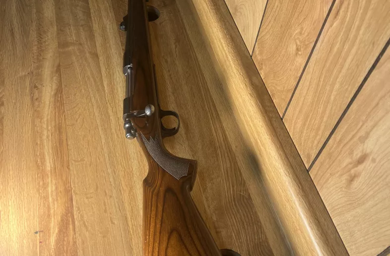 It has seen use but is in good shape. Only real wear is on the magazine floor-plate, trigger guard and the top coat of the laminate stock in areas around the butt. I’ve tried to capture this in the pictures.