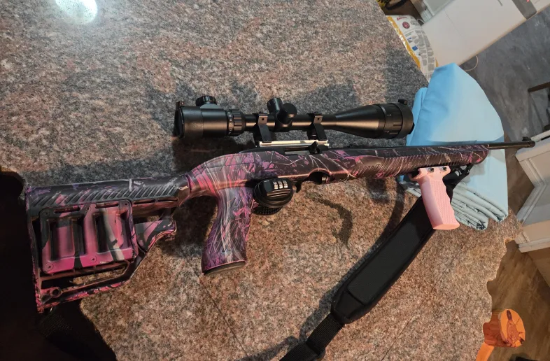 Ruger 10/22 muddy girl real tree camo. 2 mags and sling, forgrip(3d printed). Adjustable stock also holds 2 mags. May have ruger case for it.