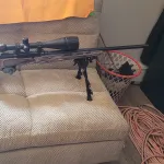 Savage A22 semi auto. Comes with a Tasco 10-40 power illuminated reticle scope, bi-pod included and a spare rotary mag. Very nice with the thumbhole laminated stock.