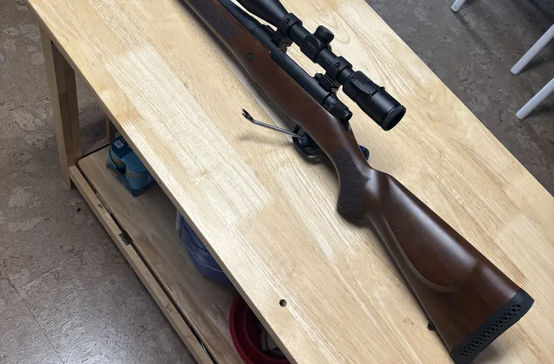 Mossberg patriot chambered in 308 wood stock fluted barrel. Never been shot comes with vortex crossfire 2 3-9 x 40