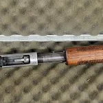 Aluminum reciever had its finish stripped off and is ready for a new coat.
