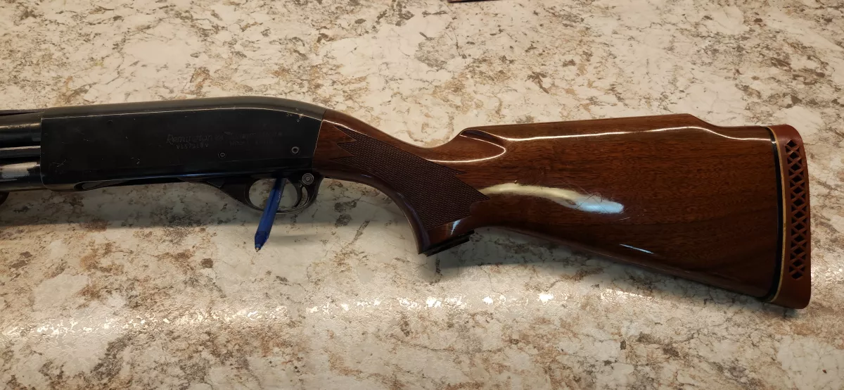 This shotgun has the nicer wood and was originally a trap gun.