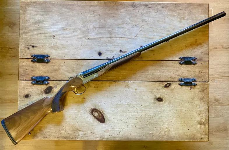 Akkar Churchill 512 12 gauge, 3” side by side shotgun. 28” bbls, 14.25” LOP. Takes remchokes. Comes with set of choke tubes. Like new, only seen one box of shells. Mint condition.