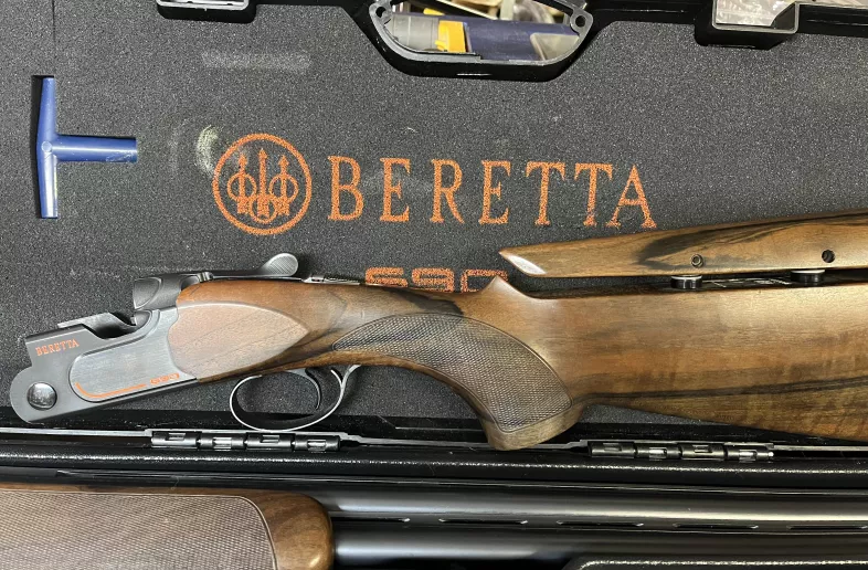 LEFT Hand - 30” barrels - Kick-EEZ pad with 1/4” spacer can be removed in winter when wearing coats - 5 Beretta chokes with some extras - hard plastic case - approx 3000 rds - very good to excellent condition.