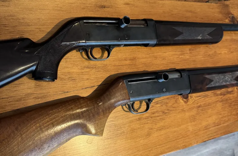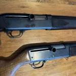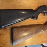 Pair of Stevens/Savage Model 124 12g, straight bolt shotguns, chambered 2 3/4”, both with 27” barrels. One has original nylon stock, one has rear stock professionally replaced in wood. Asking $475 for the pair.